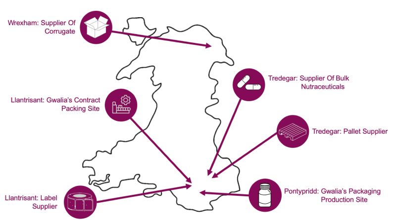 At Gwalia Healthcare, we are always looking to build strong, sustainable local supply chains wherever possible with the aim of sourcing the majority of the components required in the manufacturing process from within Wales. Whether that be labels from Llantrisant, cardboard boxes from Wrexham or pallets from Tredegar, the company is continuously reviewing supply chains to further reduce their carbon footprint.